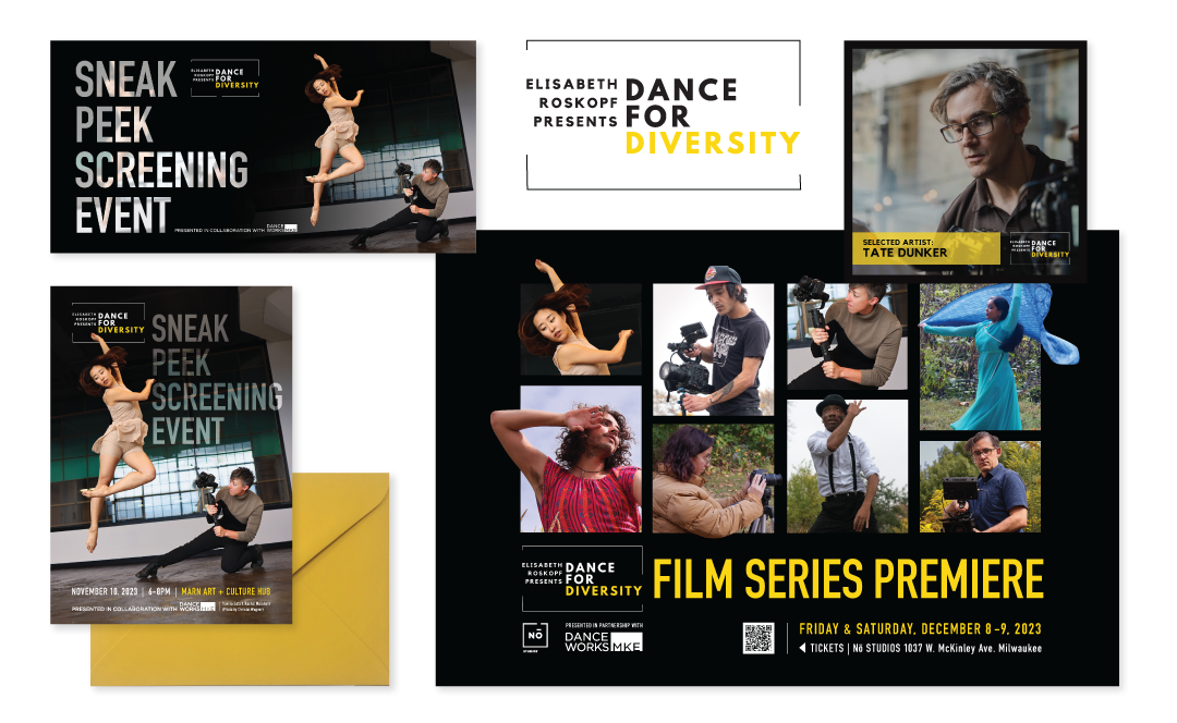 CLIENT: Dance For Diversity | logo, film series sneak peek event and film series premiere marketing collateral