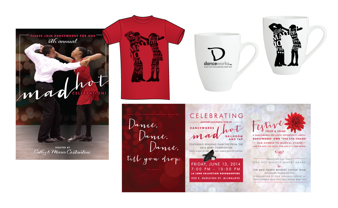 CLIENT: Danceworks, Inc. | 10th anniversary Mad Hot Ballroom and Tap program logo, special event invitation and materials