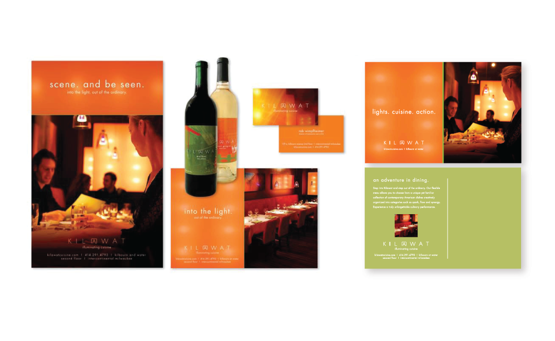 CLIENT: Kil@Wat Restaurant | restaurant branding, advertising, corporate collateral, direct mail campaigns